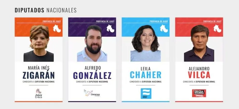 • Oficialismo Provincial: El frente Jujuy Crece-Provincias Unidas (integrado por UCR, Encuentro Jujeño, Pro, Partido Socialista y LyDER) es encabezado por María Inés Zigarán.