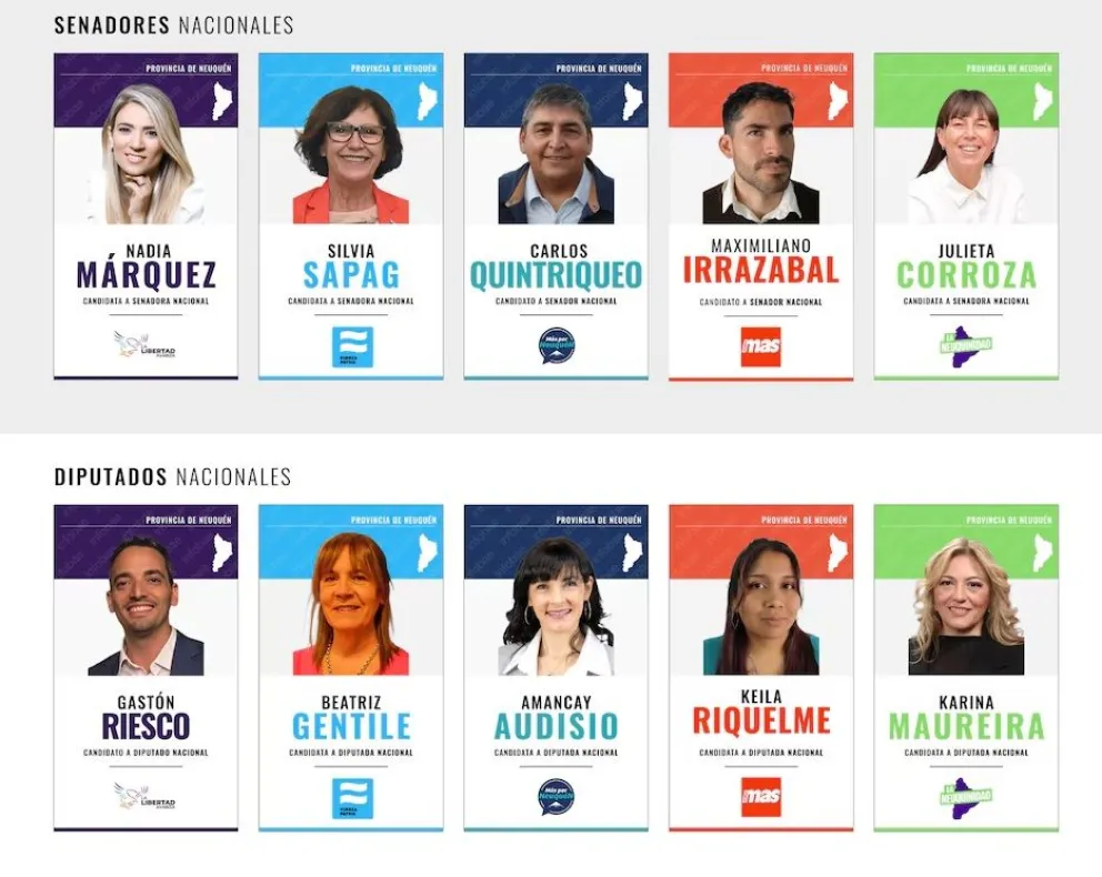 • Senadores: Silvia Sapag (Fuerza Patria), Oscar Parrilli (Fuerza Patria) y Lucila Crexell (Movimiento Neuquino, electa originalmente por JxC).