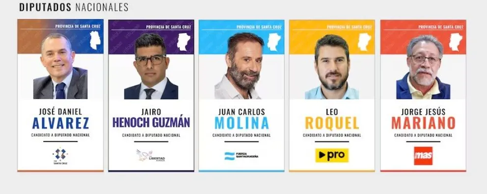 • Por Santa Cruz (Oficialismo Provincial): Encabeza la lista Daniel Alvarez, jefe de gabinete del gobernador Vidal. Cuenta con el respaldo del estado provincial.
