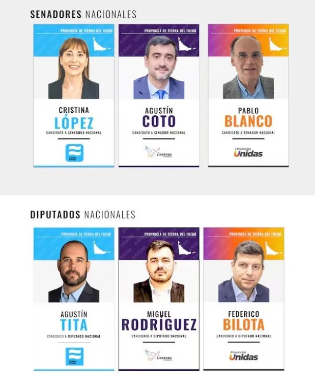 • Fuerza Patria: Alianza liderada por el gobernador Gustavo Melella (Forja) y el intendente de Ushuaia, Walter Vuoto (presidente del PJ provincial).