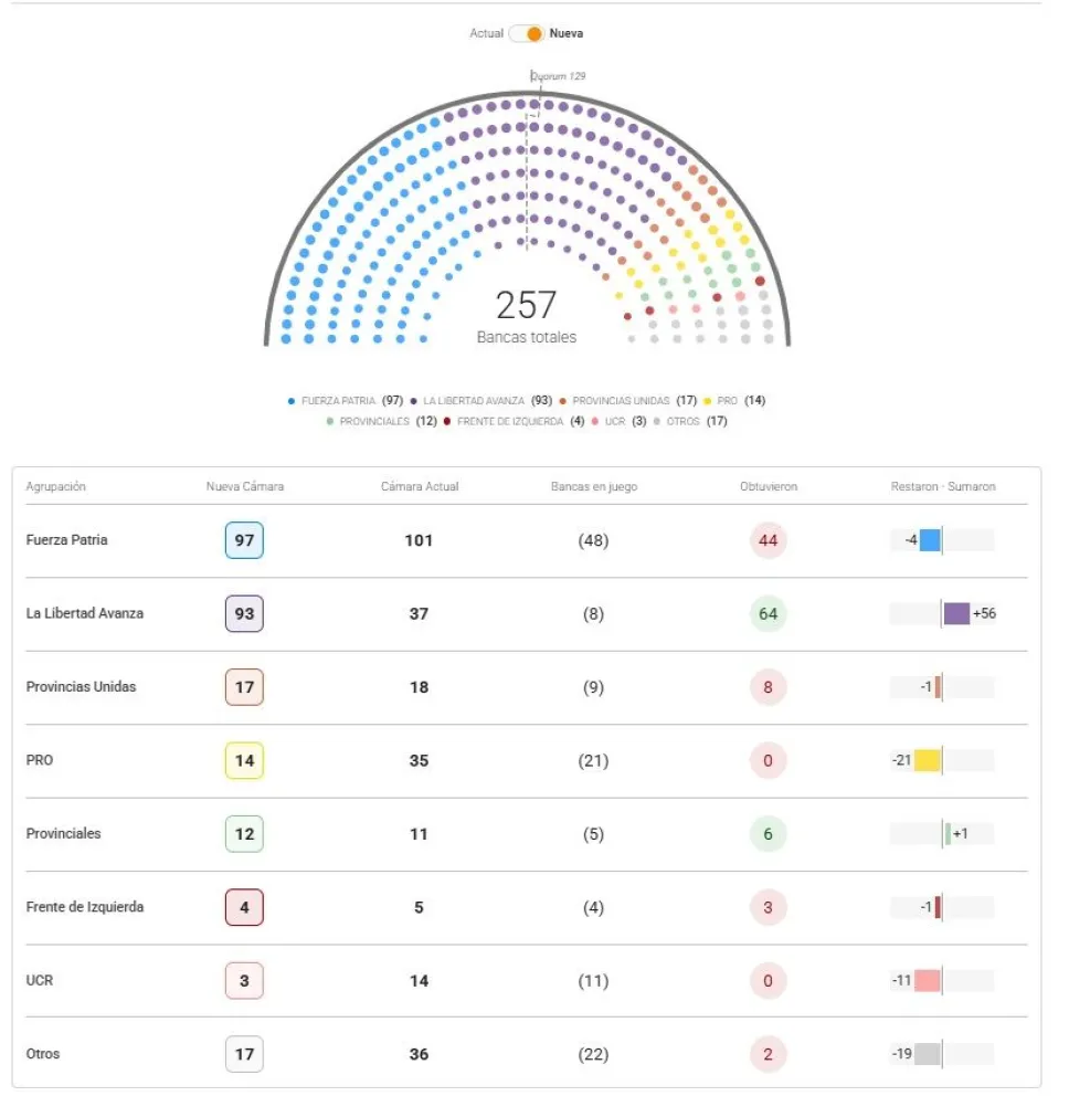 Así quedaría conformada la Cámara de Diputados a partir del 10 de diciembre de este año: