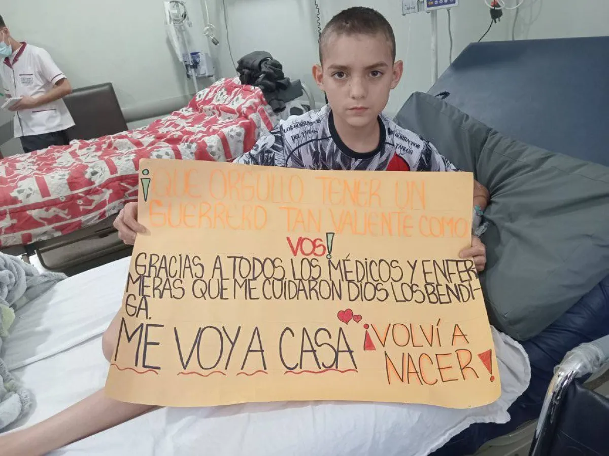 En las fotos, se lo observa al pequeño con un cartel agradeciendo el trato recibido en el hospital, como también junto a sus progenitores. "Me vuelve el alma al cuerpo de saber que vamos a estar todos juntos nuevamente en casa. Gracias a todo el pueblo sanjuanino que se unió en una oración por Yutiel", posteó Daiana Gatica, mamá del menor, quien en sus redes sociales fue contando la increíble evolución del niño, quien apenas ocurrió el accidente, debió ser intubado debido al grave cuadro que presentaba.