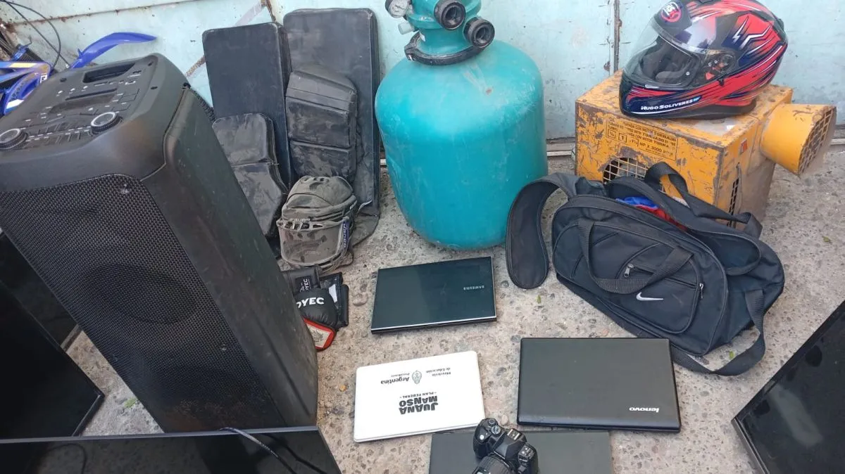Las armas secuestradas corresponden a un revólver marca Bogal calibre 22 y una pistola calibre 25 ACP, ambas aptas para el disparo. Además, se incautaron televisores, computadoras, herramientas varias y otros objetos cuya procedencia no pudo ser acreditada, junto con una suma importante de dinero en efectivo.