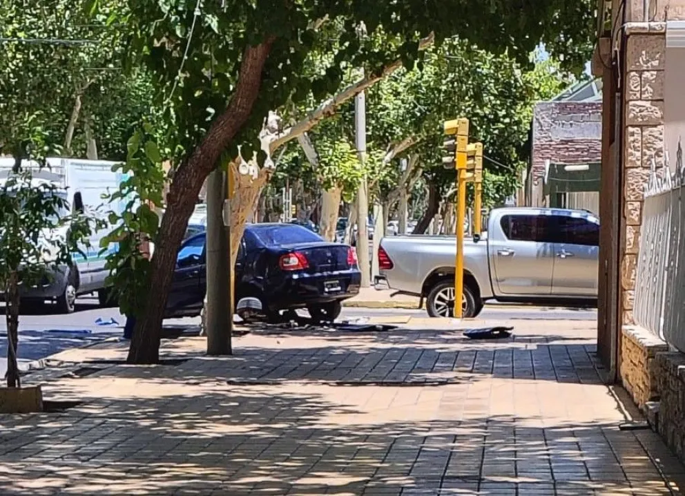 El siniestro fue en Catamarca y General Paz, cuando una camioneta y otro vehículo protagonizaron un choque que terminó con la señal vial destruida.