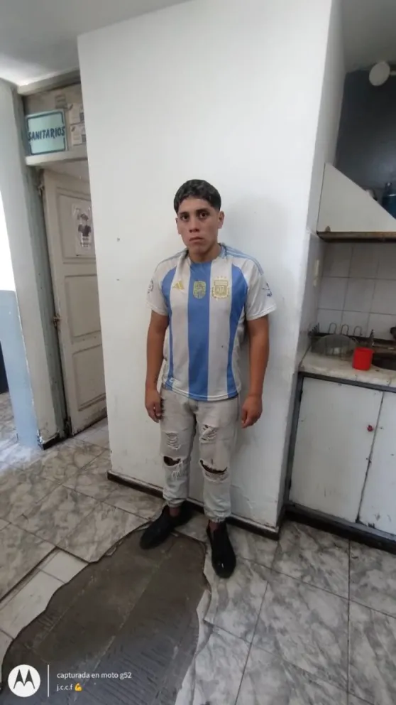 Al momento de la aprehensión, el hombre, que vestía pantalón jeans blanco, una camiseta de Argentina y una campera negra, fue identificado y se le encontró en posesión de un teléfono celular marca Samsung de color negro, cuya pantalla presentaba daños.