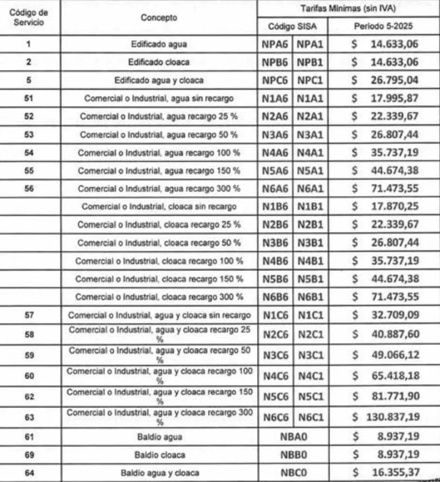 La tarifa, sin IVA, para el servicio de agua potable y cloacas quedó en $26.795