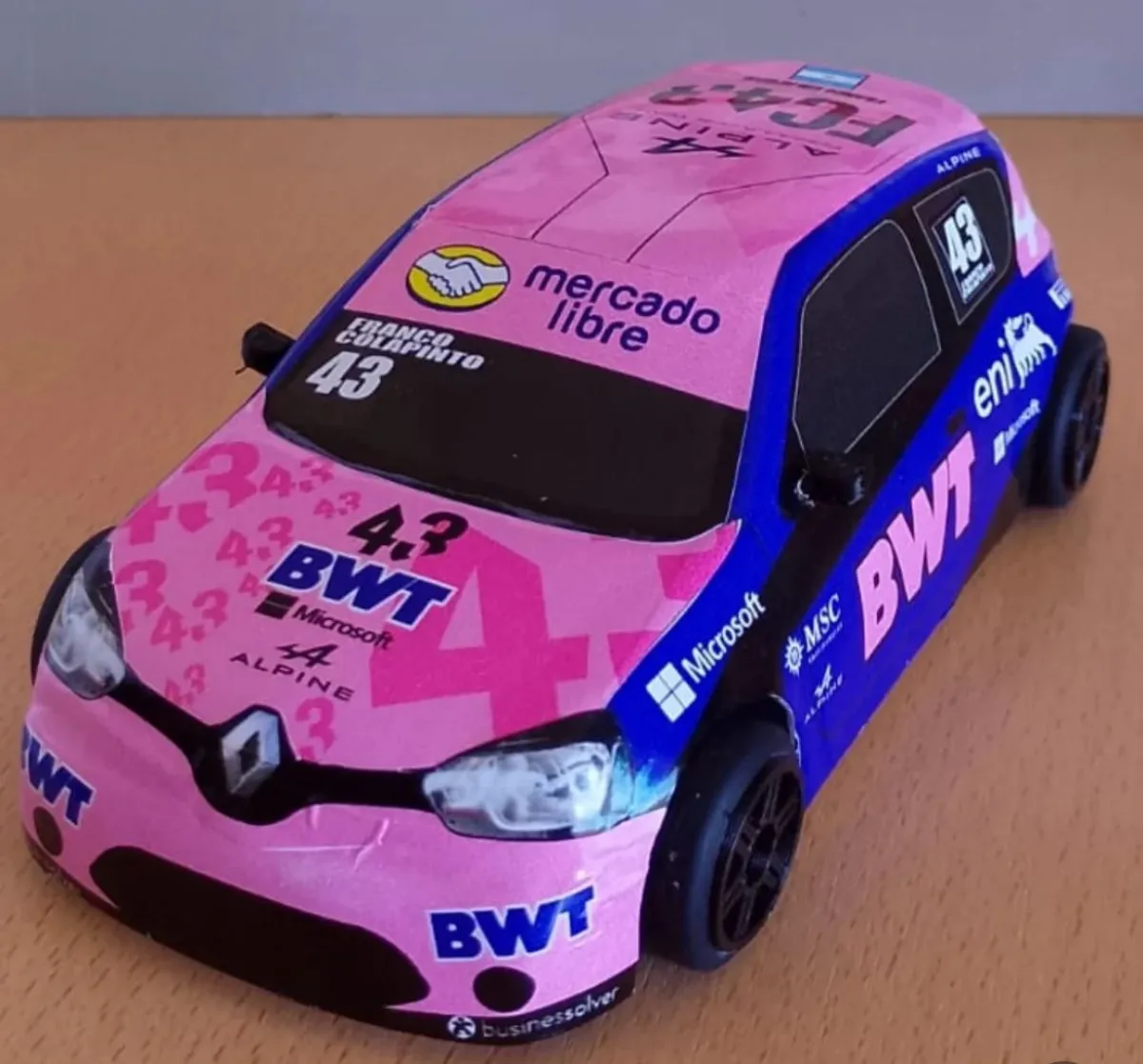 Leonardo le propuso algo distinto. “Le dije que si quería un Clío, por supuesto lo hacía, pero lo ideal era poner los colores de Alpine. Iba a quedar mucho más gracioso. Empecé a diseñar. Tomamos algunos puntos del auto real y basándose en eso hice el diseño. Se lo mostré a Mariano y le encantó”.