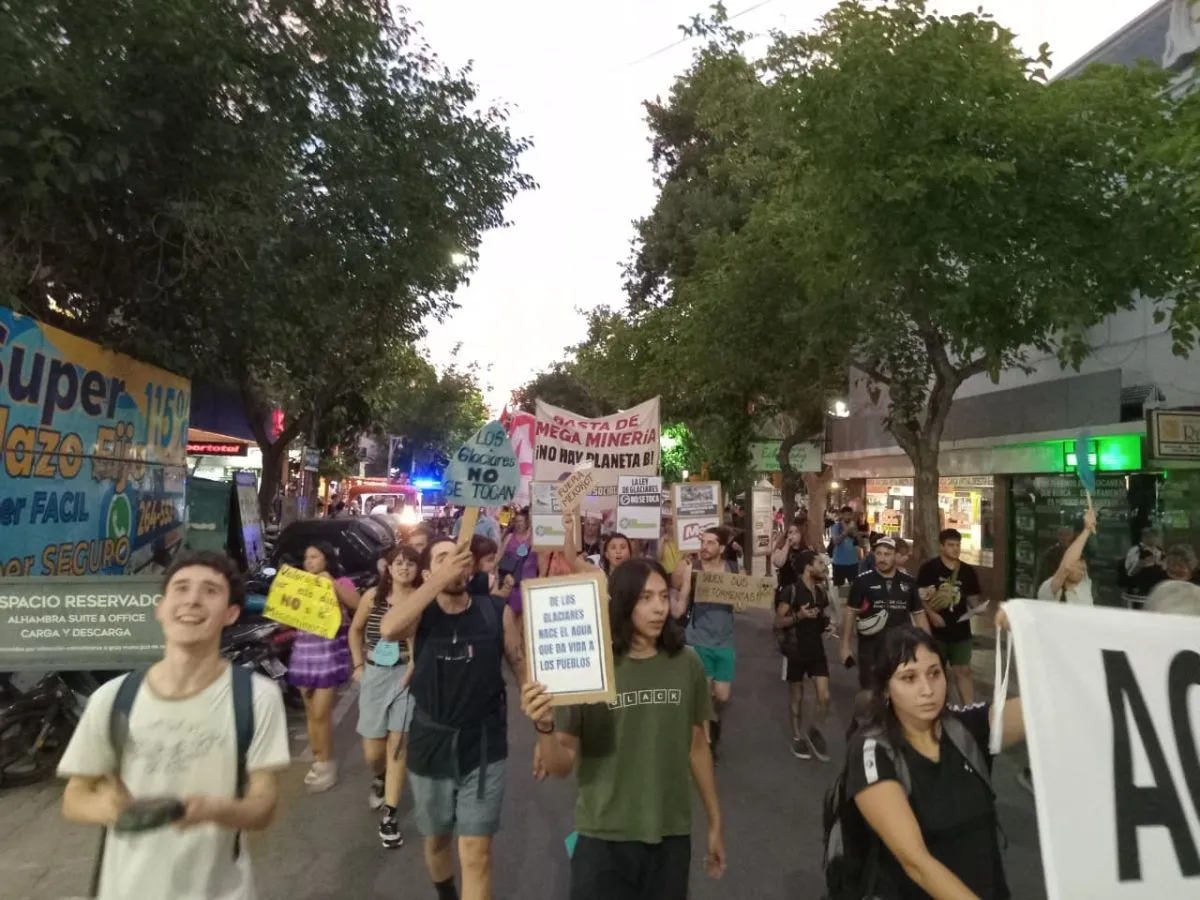 Organizaciones ambientalistas y sociales, más ciudadanos autoconvocados, reclamaron esta tarde-noche en San Juan contra una posible modificación de la Ley de Glaciares, que es impulsada por el Gobierno nacional que conduce Javier Milei.