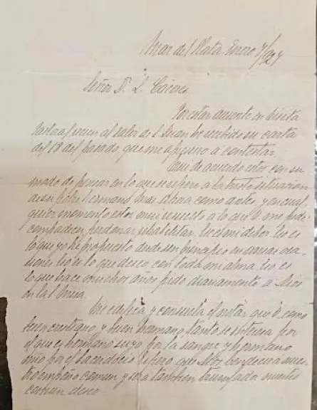 Una familia de Iglesia donó una carta inédita de Monseñor Orzali con casi 100 años de antigüedad.