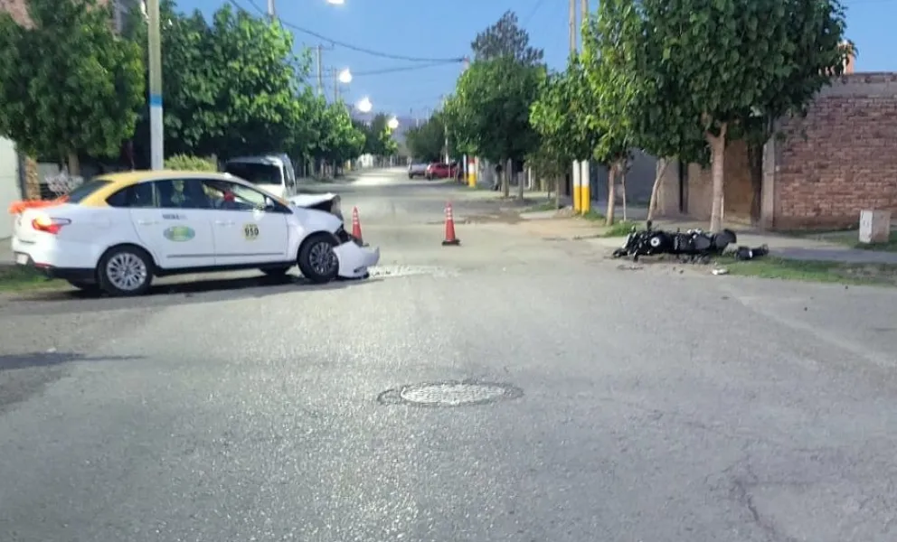 La conductora de la moto, una joven de apellido Aldeco de unos 25 años de edad, circulaba a bordo del vehículo Honda 150cc. por calle San Juan en dirección oeste-este, cuando al llegar a la intersección con calle René Favaloro, impactó de lleno contra un Fiat Siena que funciona como taxi, manejado por Daniel Riveros, quien viajaba de sur a norte.