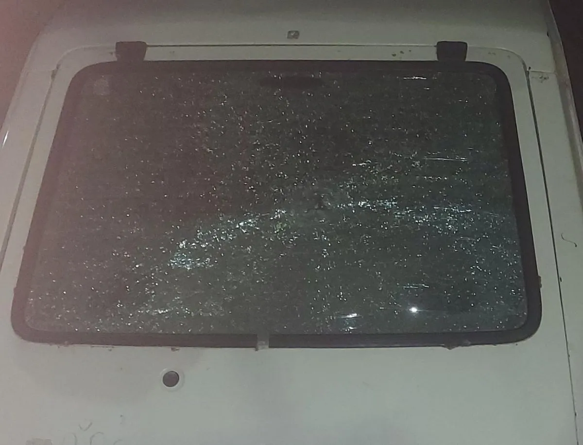 Uno de los autos alcanzados por las piedras. Foto: Cazadores de Noticias.