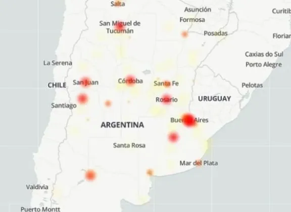 Además, el sitio desplegó un mapa en tiempo real que permite visualizar las zonas afectadas en todo el país. De acuerdo a esa información, los principales puntos con problemas son la Ciudad y la provincia de Buenos Aires, Rosario, Córdoba, Tucumán, San Juan Mendoza. En paralelo, algunas ciudades de estas provincias presentan afectaciones parciales, con fallas intermitentes en el servicio.