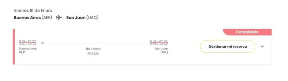 Pese a las sanciones, Flybondi suspendió el vuelo de este viernes a San Juan y crece la molestia entre los usuarios