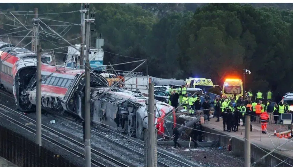 El operador de infraestructuras ferroviarias español, Adif, anunció que un tren de la empresa Iryo con destino a la estación de Madrid Puerta de Atocha descarriló, cruzó otra vía y chocó con una formación Alvia de Renfe que iba hacia Huelva, lo que provocó su descarrilamiento.