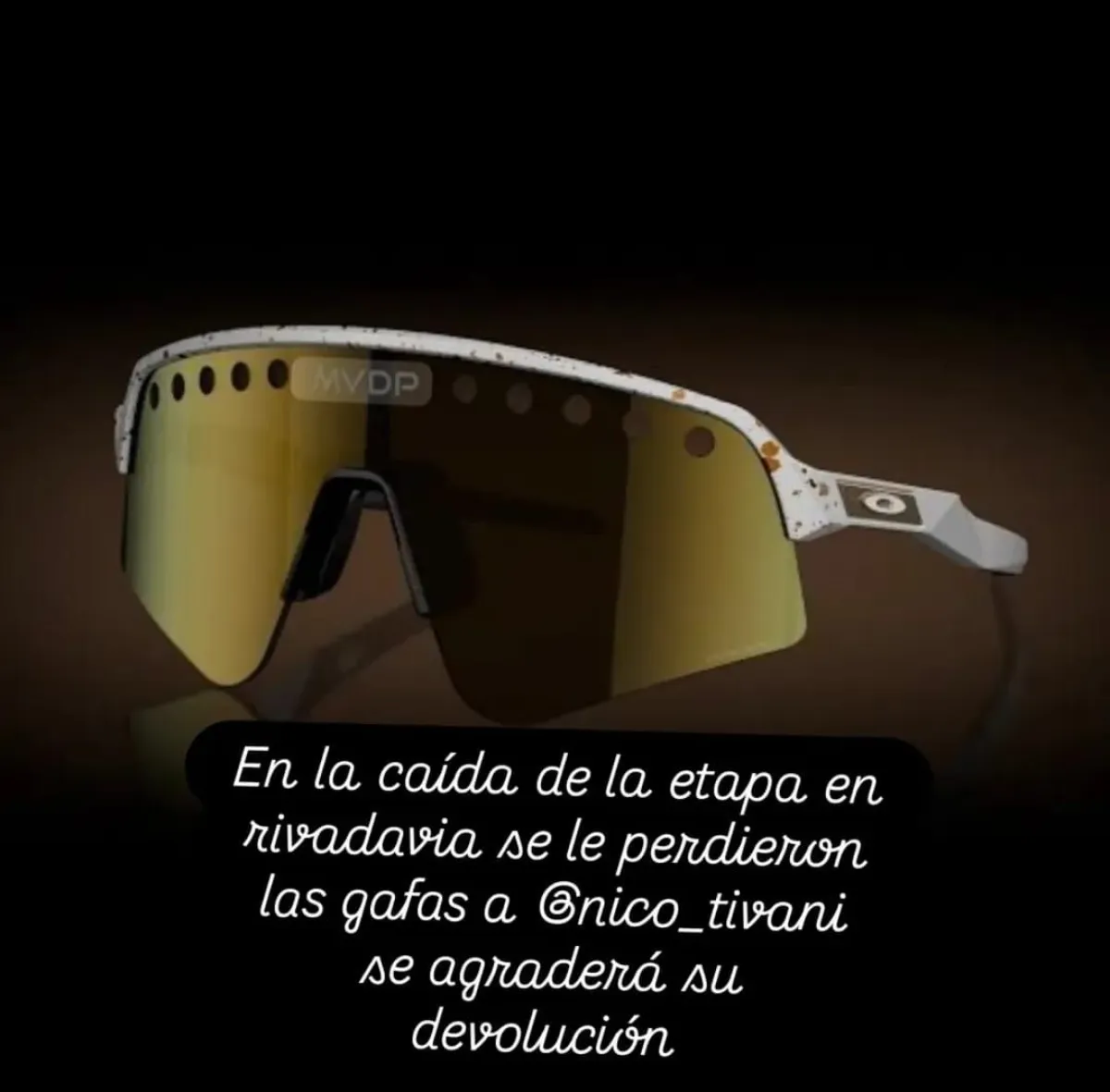 A través de redes sociales, los allegados de Tivani compartieron una publicación en la que muestran los lentes extraviados. Los mismos son costosos y deberá usarlos en lo que resta de competencia. Piden colaboración a la comunidad para poder encontrarlos.