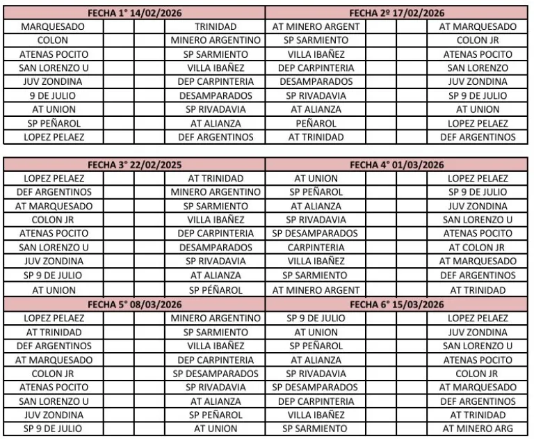 La temporada 2026 de Liga Sanjuanina de Fútbol ya está oficialmente en marcha. En la última reunión del Consejo Directivo se confirmó la programación de la primera fecha del Torneo Apertura, que se disputará el próximo sábado 14 de enero. Los encuentros de Cuarta División comenzarán a las 15:00, mientras que los partidos de Primera División se jugarán desde las 17:30.