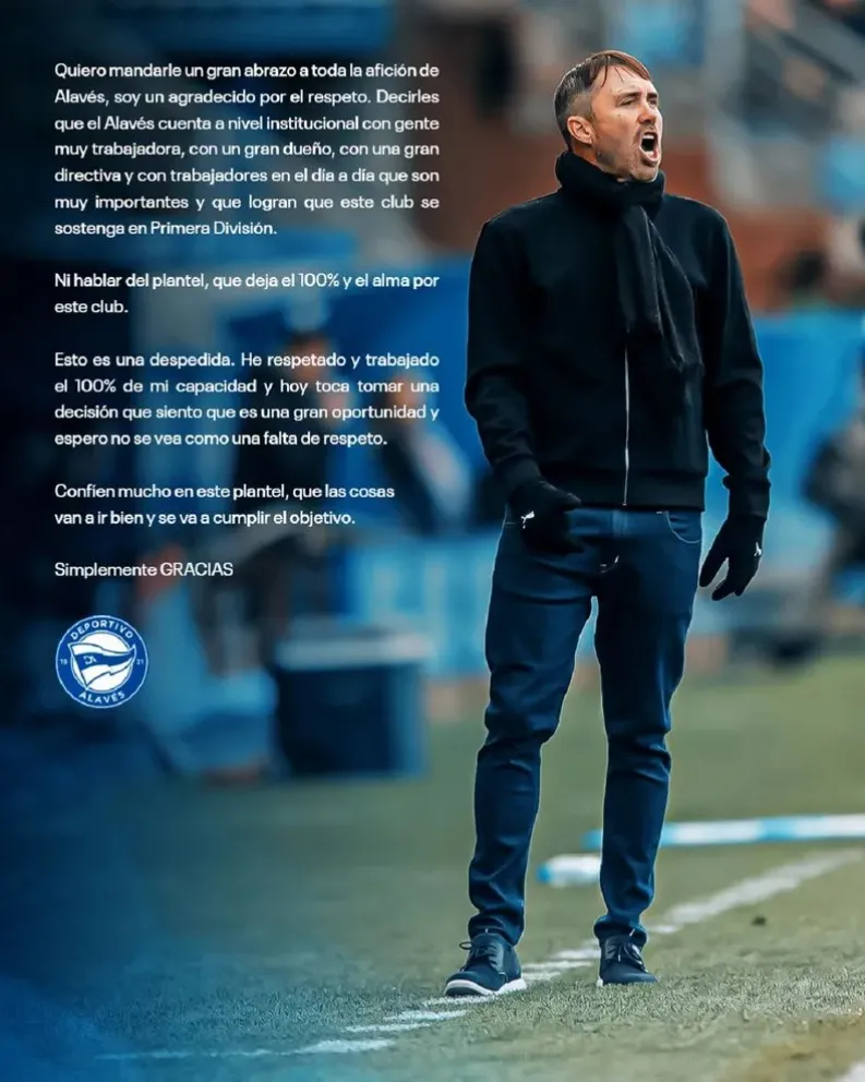 En un comunicado difundido por el club español, Coudet se despidió luego de dirigir 55 partidos: “Quiero mandarle un gran abrazo a toda la afición de Alavés, soy un agradecido por el respeto. El club cuenta con gente muy trabajadora, con un gran dueño, una gran directiva y empleados que sostienen a la institución en Primera División”.
