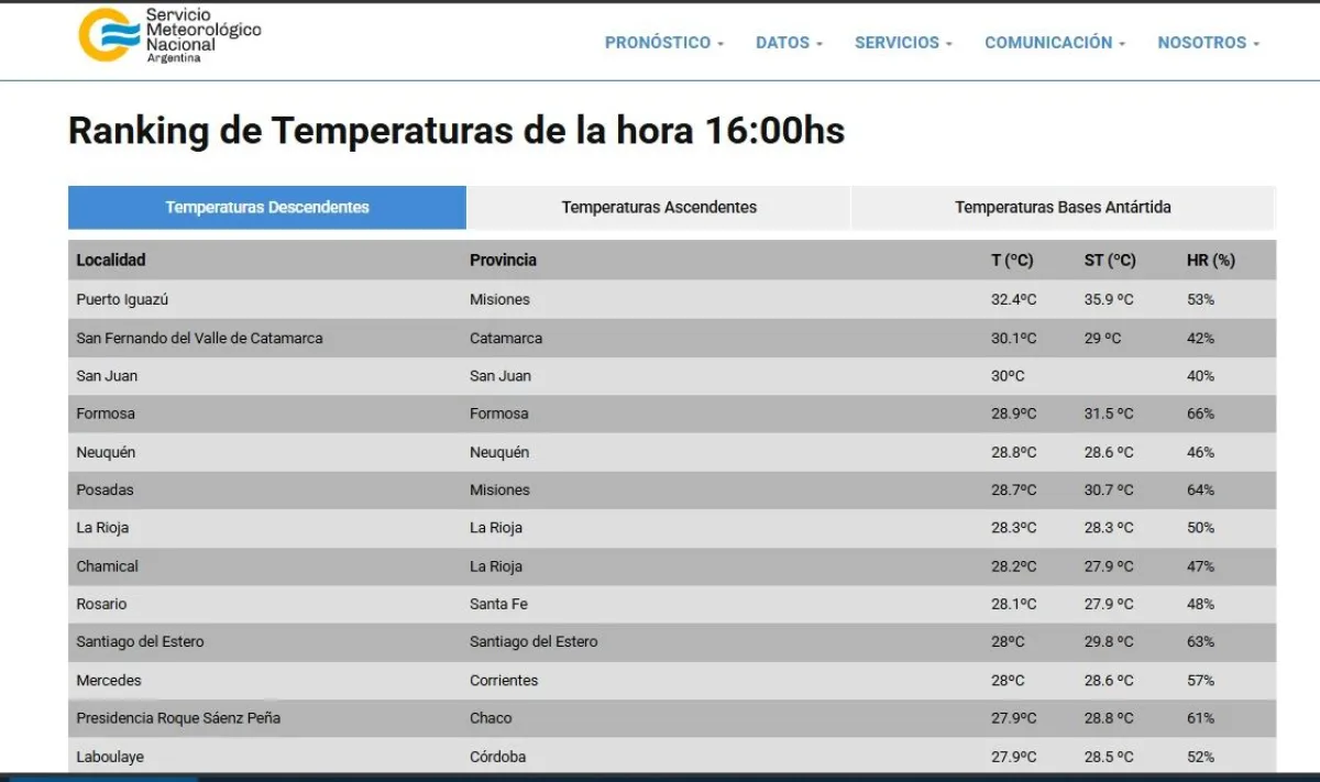Con ese tercer puesto, San Juan también superó a localidades como Formosa (28.9º), Neuquén (28.8º) y Posadas, la capital de Misiones (28.7ºC).