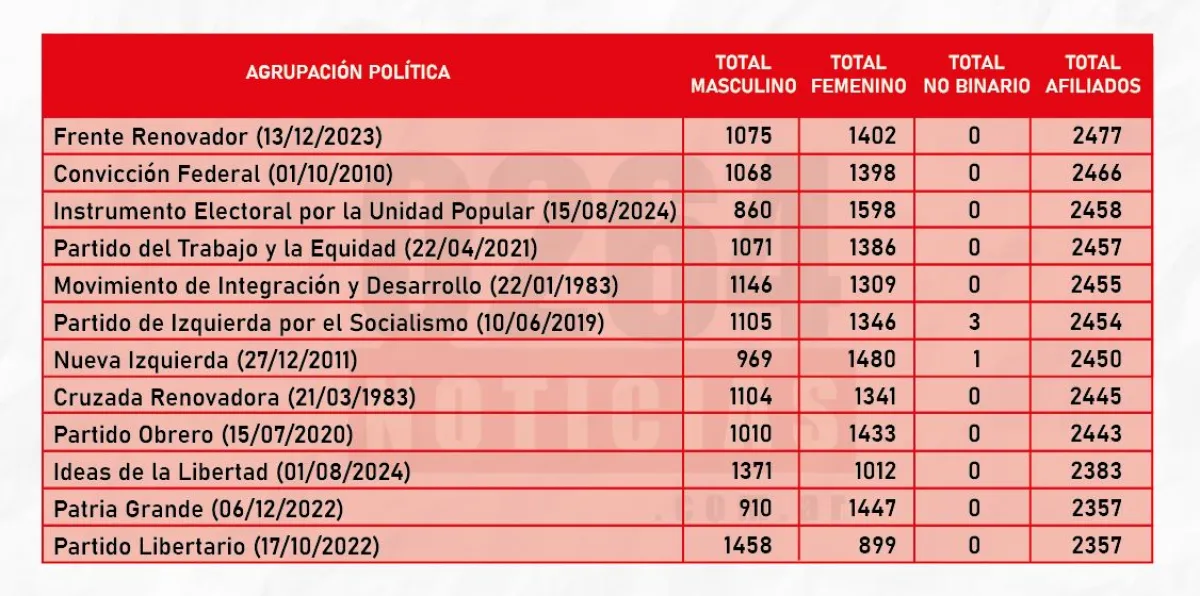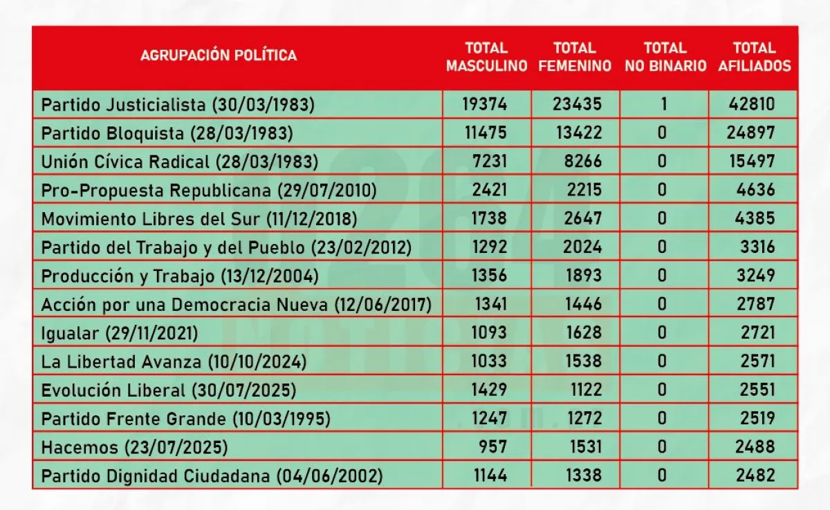 El desafío para los partidos “chicos” es sostener el mínimo de afiliados que exige la ley de Partidos Políticos (23.298), el cual se actualiza anualmente. En 2026, el piso es de 2.480. Parece un número pequeño, pero no lo es y a las claras está porque casi que se repiten las agrupaciones que enfrentan ese obstáculo.