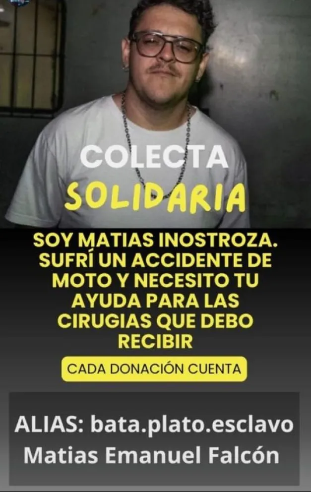 A raíz del fuerte choque, Inostroza sufrió heridas de consideración y ahora deberá someterse a distintas intervenciones quirúrgicas, por lo que su entorno decidió impulsar una campaña solidaria para ayudarlo a atravesar este difícil momento.
