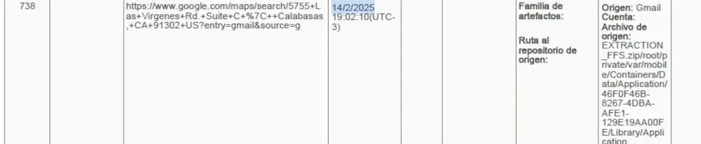 La dirección figura como buscada 34 veces en el análisis de la DATIP: ingresaba a Google esa dirección con frecuencia, al menos desde julio de 2024. La ingresó en Google, incluso, en los días posteriores al estallido, el 16 y 17 de febrero, hasta el 1° de marzo inclusive. ¿Por qué era tan importante para Novelli? ¿Qué hay allí? ¿Esta “suite C” detrás de una cafetería podría terminar allanada con un exhorto internacional? Los otros documentos de la causa relevados por Infobae no la mencionan.