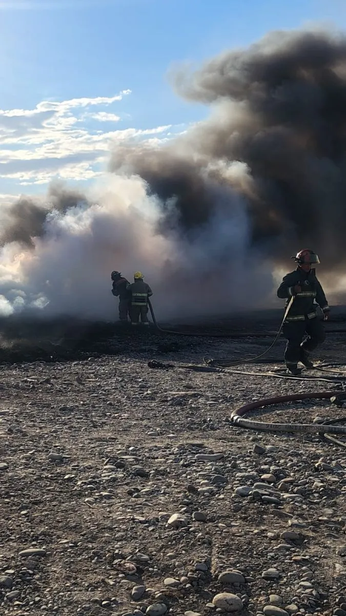 Tres dotaciones de Bomberos trabajan en la zona, donde se prendieron fuego cerca de 50 neumáticos. La situación está controlada.