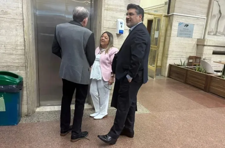 Nechevenko arribó a tribunales muy temprano, poco antes de las 9. Se dirigió al pasillo en el quinto piso y luego optó por aguardar tomando un café en el bar de la planta baja del edificio, junto a dos acompañantes. A las 10 volvió a la fiscalía e ingresó sola con una carpeta llena de documentación.