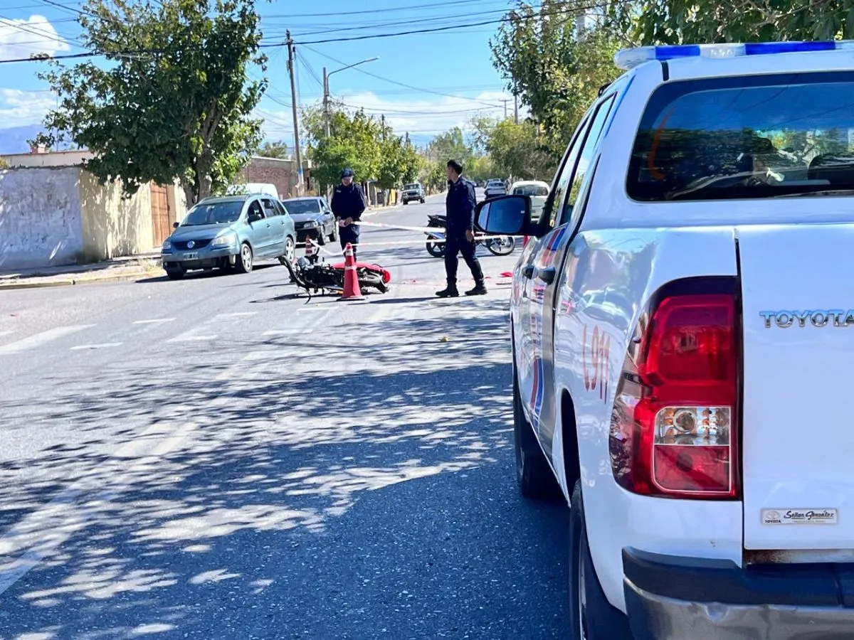 Un importante accidente de tránsito se produjo sobre las 13:30 horas en Villa Krause, departamento de Rawson. Es que, según fuentes del caso, una moto impactó contra una camioneta, en el cruce de calles República del Líbano y Sarmiento, donde no hay semáforos y en cuya intersección suelen darse de este tipo de siniestros.