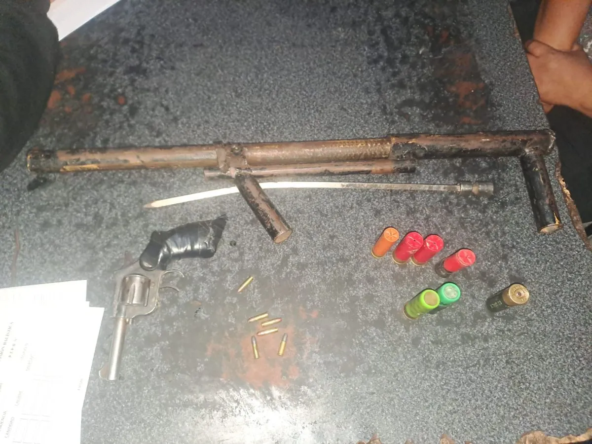 Durante la requisa, los policías constataron la presencia de un revólver con el mango envuelto en cinta y varios cartuchos de escopeta. Además, al levantar un colchón en un rastrillaje superficial, encontraron un arma de fabricación casera, conocida como “tumbera”.
