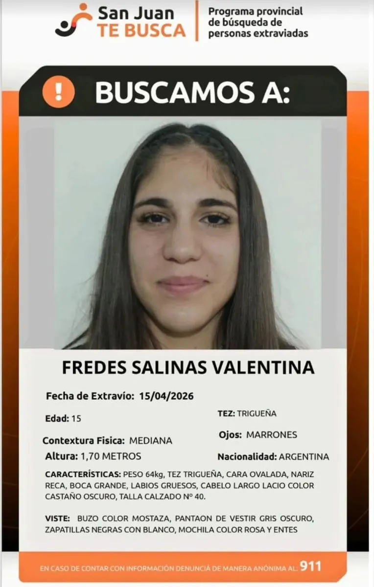 Las autoridades provinciales, en conjunto con la Policía de San Juan, solicitaron la colaboración de la comunidad para aportar cualquier dato que permita dar con la adolescente. En ese sentido, recordaron que cualquier información puede ser comunicada de manera anónima al 911.
