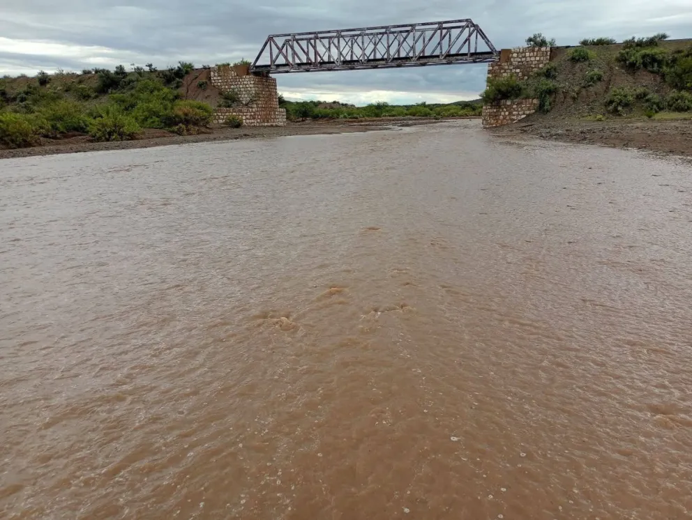 COMPLICACIÓN Las postales de la imponente crecida del Río Marayes sobre la Ruta 141, la cual se puede transitar con extrema precaución