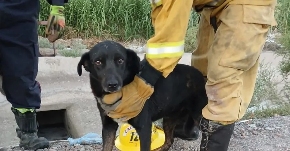 CAPITAL Bomberos voluntarios rescataron a dos perros cachorros atrapados en una cuneta y les salvaron la vida