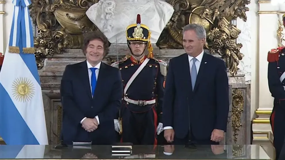 EN LA TARDE A un año de gobierno, Javier Milei salió al balcón de la Casa Rosada a saludar acompañado por sus ministros