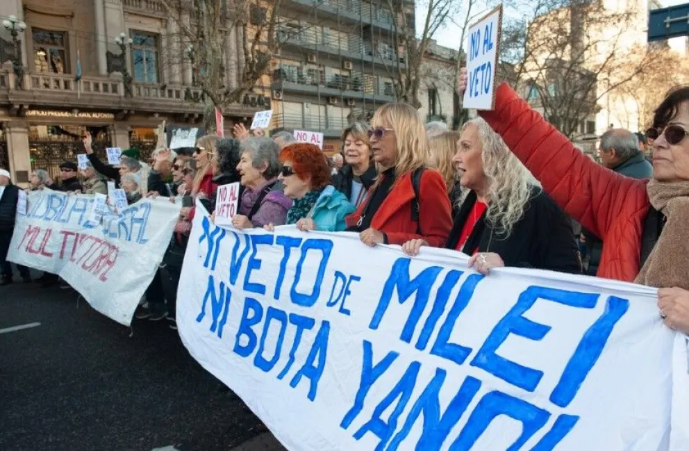 ESTE MARTES Manifestantes reclaman en el Congreso por el veto de Milei y Gendarmería activó el protocolo anti-piquetes
